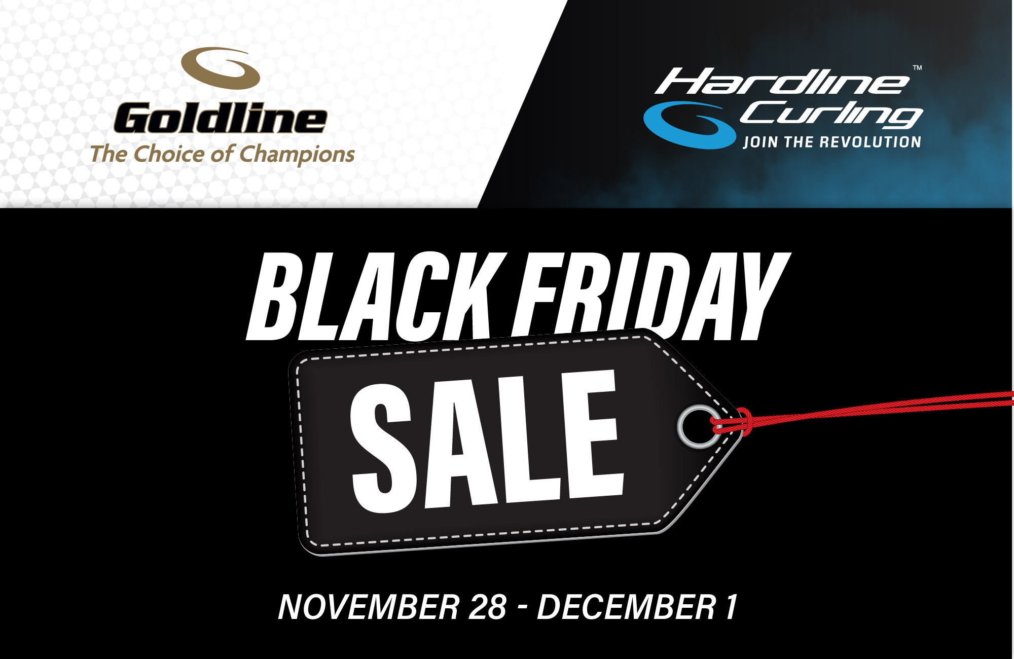 Black Friday has arrived at Goldline and Hardline. Shop from November 28 to December 1 and save on curling gear while quantities last. Everything is available online with limited inventory available in stores.